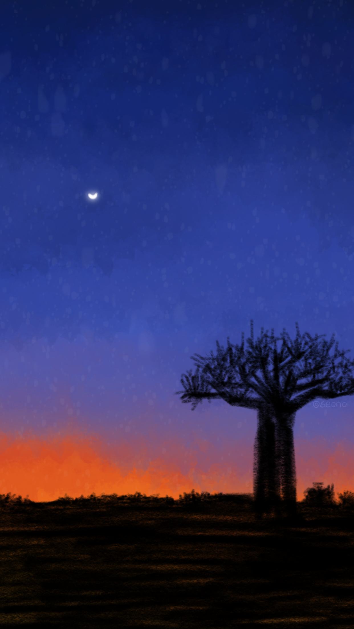 이 당시에 석양에 꽂혔있었나봅니다. 석양만 두개나 그린 거 보면;;; 해 지는 석양 아래 바오밥나무입니다. 배경화면 이쁠꺼 같아 편집했습니다. 예쁘게 쓰세요. ★모바일(아이폰) 5.5인치&6.5인치