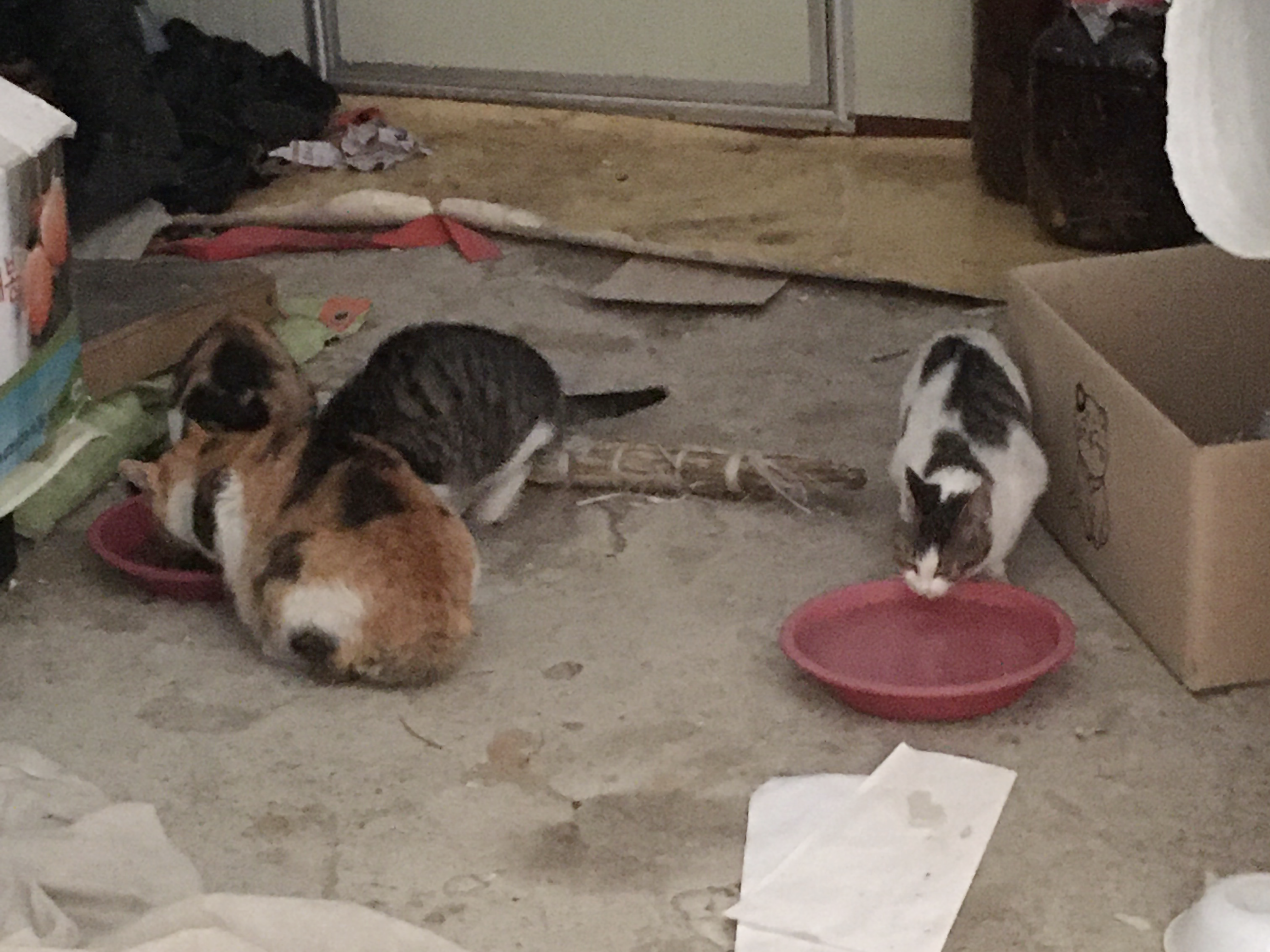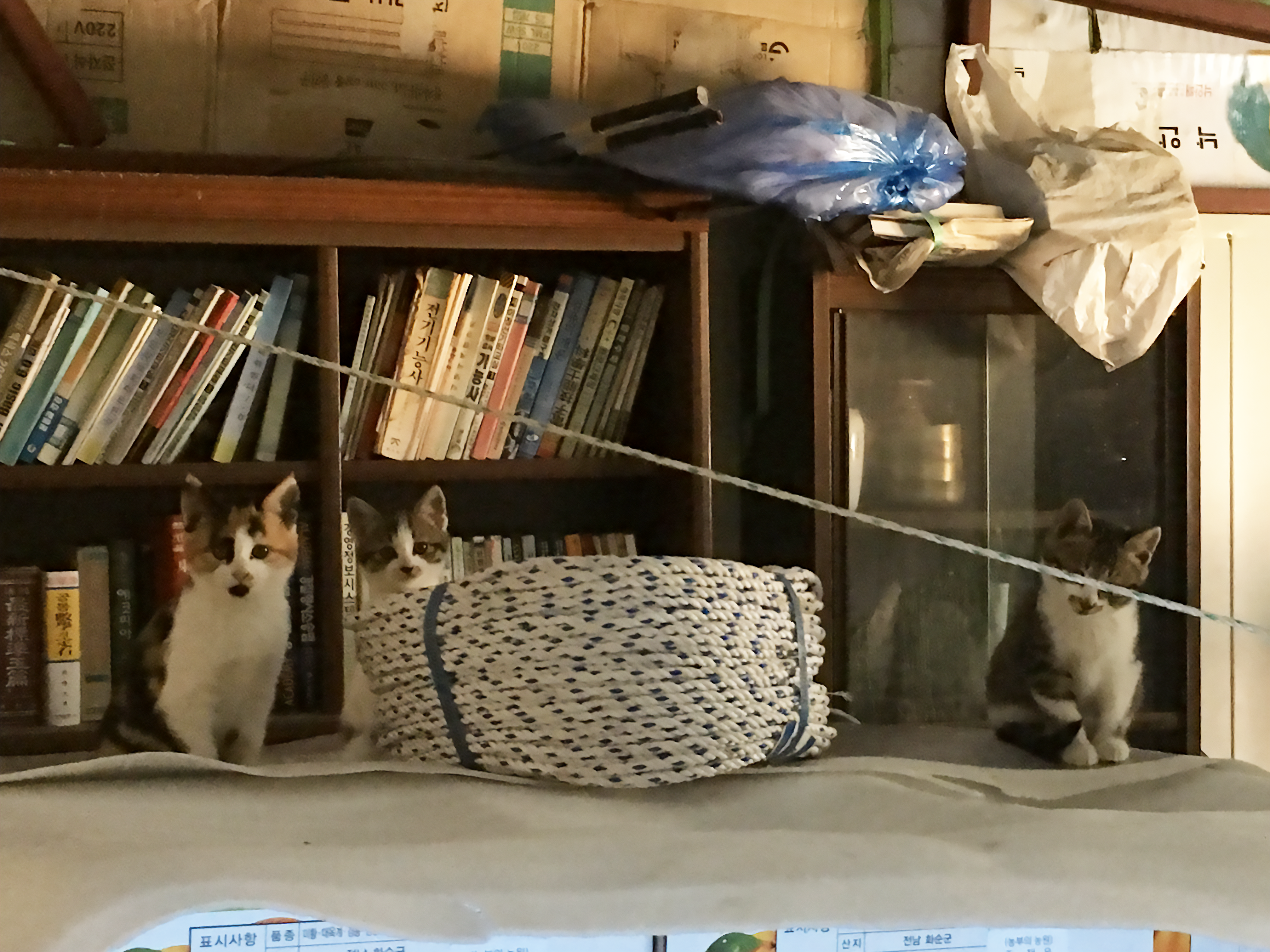 누가 봐도 빼박 삼순이 새끼들이었다. 매일 같이 밥 먹으러 오는 삼순이를 보며, 그동안에 "너, 애들은 안 보고, 맨날 오냐? 엄마로서 불성실해." 하며 타박을 했더니, 알고 보니 바로 코앞에 두고 삼순이는 시침을 뚝 때고 있었다. 녀석들은 그렇게 2층 창고에서 방세도 안 내고 살고 있었다.