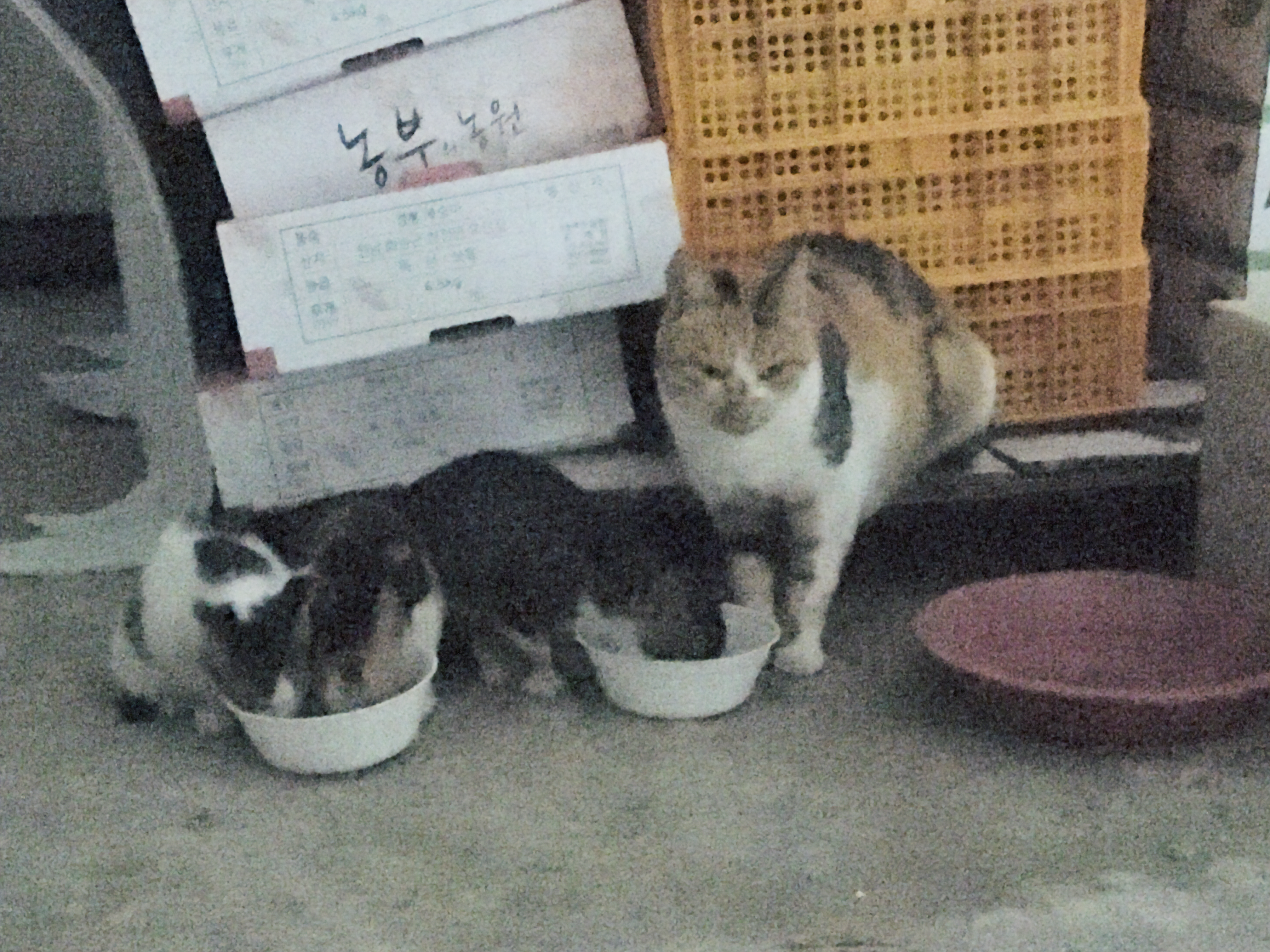 아직은 새끼들이고, 추운 겨울이니깐 봄이 될 때까지는 그냥 챙겨줄 생각이었다. 그때부터 우리 엄마 몰래 밥을 2층 창고 안에 가져다 주기 시작했다. 당연히 봄이 오면 성묘가 되어 어련히 나갈 줄 알았었다. 이것은 수컷 고양이 한 마리를 10년 넘게 키웠지만, 정작 아무것도 모르는 나의 오만한 생각이었다. 밤이면 밤마다 녀석들은 2층에서 우다다닥을 하기 시작했고, 볼일을 창고 안에서 해결하고 있었다. 계단 입구에 들어서면 새끼들의 오줌똥 냄새가 코를 찔렀고, 결국 난 엄마한테 걸려 그날부터 폭풍 잔소리를 들으며, 녀석들의 욕받이가 되었다.