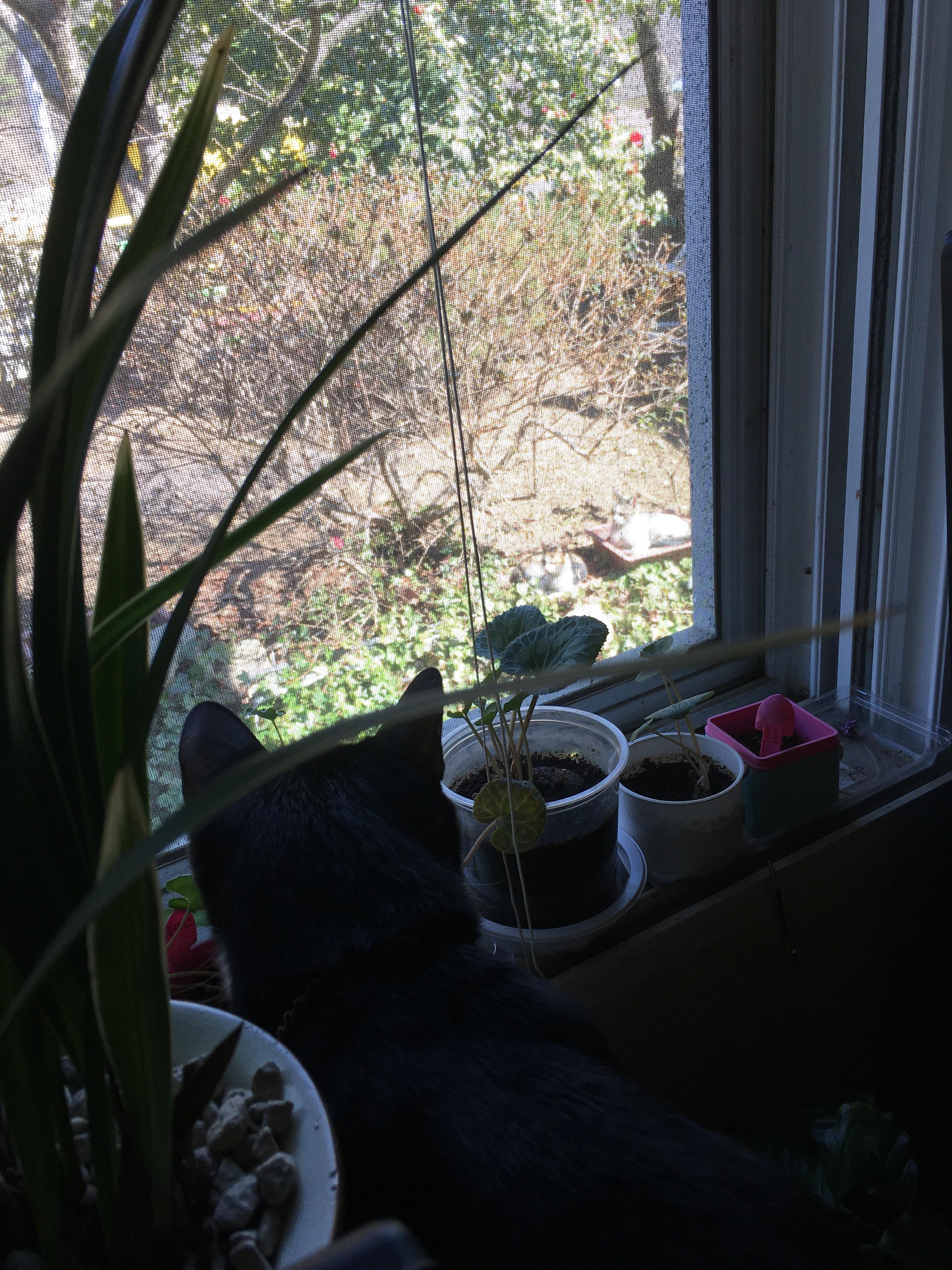 햇볕 쬐는 냥아치들을 경계하는 우리집 노묘 '타로씨'